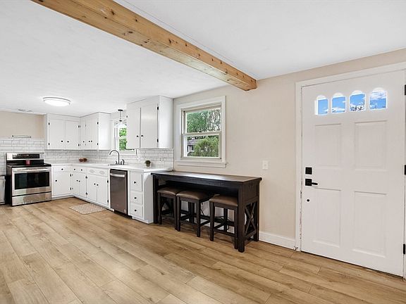 Highest & Best due 5:00pm 5/22/24! Spacious 4 bedroom Cape located in the heart of East Longmeadow on a dead end street! This home has a functional layout with two bedrooms and a full bath on the first floor and two bedrooms with a half bathroom on the second floor. The main level has been updated with new Vinyl flooring throughout the kitchen and living room, updated stainless steel appliances and stunning stone fireplace with a pellet stove that heats the whole home during colder months! The second floor also has two large bedrooms and a half bathroom while the lower level features additional living space for a game room or another family room with a bar. A porch that serves as the perfect mud room adjoining the garage to the house has been recently updated with all new dry wall, paint and flooring and also leads to the rear yard that has plenty of space for yard games and summer cookouts. A new roof in 2020 adds peace of mind and value!