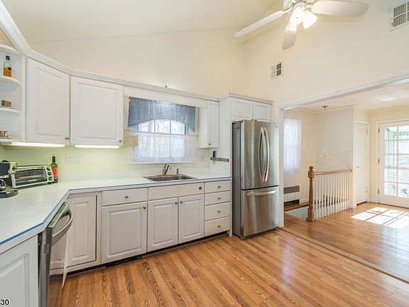 Lake front living at its best! Immaculate Ranch featuring newer kitchen with vaulted ceiling, skylight, hardwood floors, stainless steel appliances, 6 burner gas stove & recessed eyeball lighting. Beautiful views of the lake through the large picture window in the LR as well as from the enclosed porch accessible from a French door in the Dining Room. A gas fireplace with marble surround is the focal point of the bright and open Living Room. The lower level boasts a fantastic walk-out basement with ceramic tile floors, kitchenette and updated full bath with stall shower and separate entrance - perfect for guests! Enjoy lake front living - take a swim off your private dock or take advantage of access to the 6 lakes! Denville mailing address. A must see!