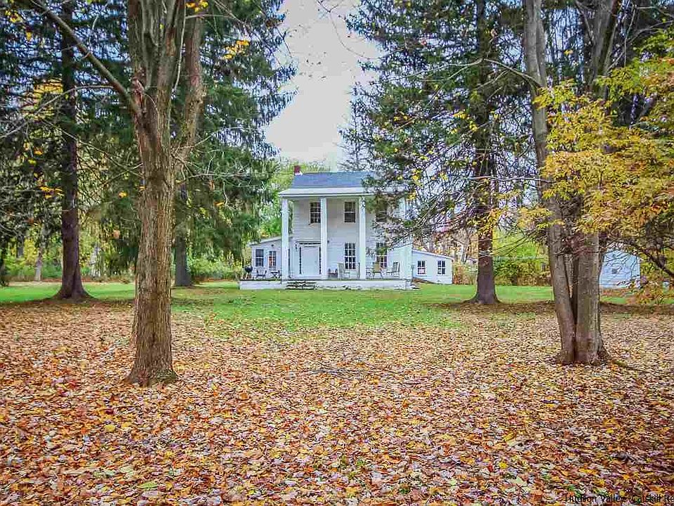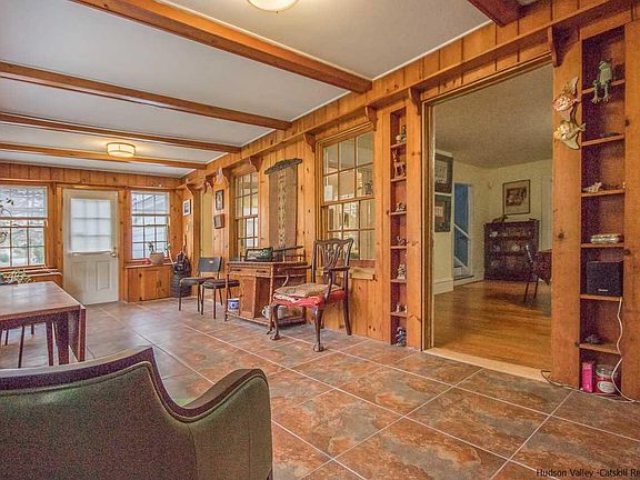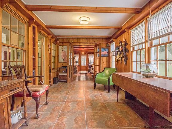 Bohemian chic meets yesteryear grandeur in this circa mid 1800's find. Deep nature is found in a village environment on this inviting 3.5 acres of expansive lawn, mature pines and plentiful hardwoods for a feeling of country living yet minutes to all amenities -plus hiking out your back door at 5000 acre Sam's Point Preserve trails. With almost 3000 square feet that includes 5 bedrooms, 2.5 baths, laundry facilities on both the first and second floors, large eat in kitchen, dining room, living-room, library with fireplace and large multi windowed entry room this home offers just about everything a person could want. There is a 1 car attached garage, utility room /garden shed and a separate shed that would make a great writers/artist studio. 1 hour 45 minutes to NYC by car and also on a NYC bus route. A unique and special property.