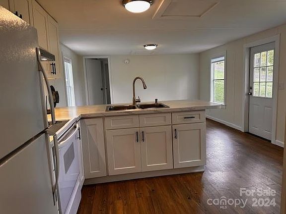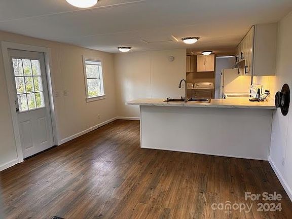 Charming Mountain Retreat in Fines Creek area. This updated 2-bedroom, 1-bath home offers breathtaking views of pastureland and long-range mountains, perfect for watching stunning sunsets from almost every room. Recently remodeled in October 2024, the home features new central air/heat pump, paint, a modern kitchen with white shaker cabinets, and under-cabinet lighting. Enjoy outdoor living with a new fire pit, walkway, and freshly stained decks. Energy-efficient updates include blown-in attic insulation, an encapsulated crawl space. Fast 1-Gig fiber-optic internet. Additional perks include a gravity-fed artesian well, a large outbuilding, and parking for six cars. The home offers both tranquility and convenience, with mountain views and modern upgrades throughout. (Home and property unaffected by Hurricane Helene).