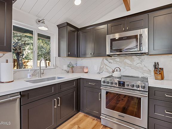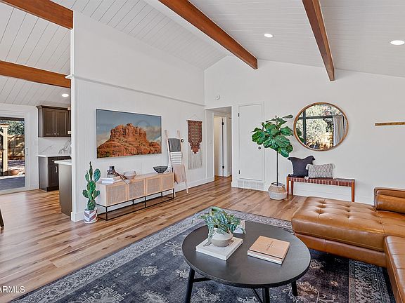 Showings began 5/16-5/19! Turnkey fully furnished Airbnb in the spectacular Kachina Neighborhood in West Sedona! No HOA! Breathtaking views of Thunder Mountain and so close to town! The home was fully renovated in 2021. The property has been a success on Airbnb and booked over 90% since going live as an STR in late January 2022. This house sits on almost 3/4 acre in a private neighborhood. 2021 Upgrades include: new roof, windows, upgraded electric panel, kitchen, bathrooms, plumbing, extensive landscape, water heater, AC/Heat, paint interior and exterior, all lighting, all new shiplap ceilings, much much more!
