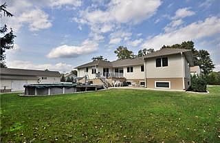 Huge custom Raised Ranch situated on over 1/2 acre of level land. Large eat-in kitchen with sliding glass doors leading to backyard oasis. Living room with wood burning stove and formal dining room. This home is complete with 6 bedrooms, 3 full bathrooms, and 1 half bathroom. Full finished basement with additional living space including kitchen, dining room, living room, and walkout. Backyard includes deck with above ground pool and large yard, which is perfect for entertaining during the warm summer months. Attached 3-car garage and 1 car detached garage.