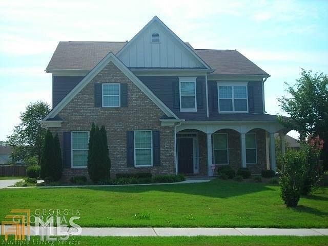 This was the model home for River Walk Farms. All new carpet throughout, entire home has been pressure washed, door frames painted, new air vents. Separate living, dining, and front room. Kitchen has eat in area, breakfast bar, SS appliances, and island. Hardwood floors downstairs, plantation blinds throughout, and half bath and laundry on the main. Master bedroom boasts a large sitting room, separate tub/shower, separate toilet room, and walk in closet. Neighborhood has gigantic pool with waterslide, basketball, and massive covered pavilion.