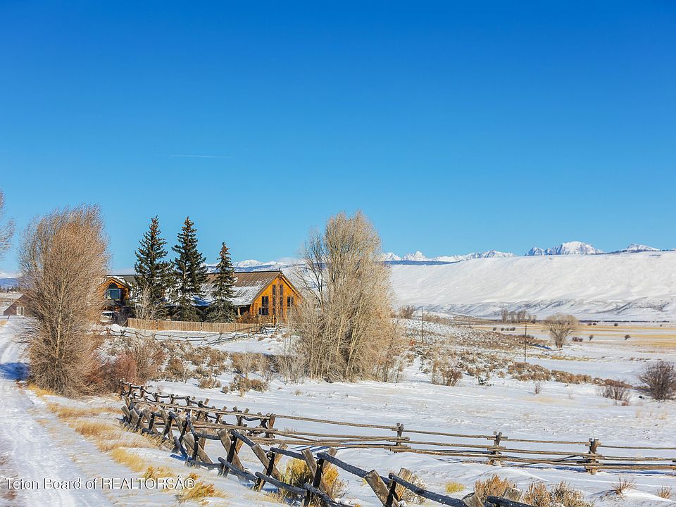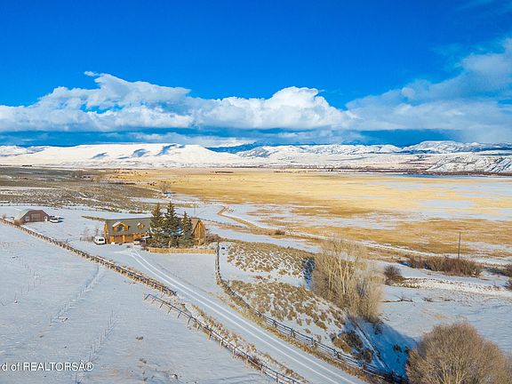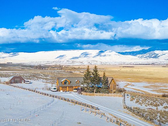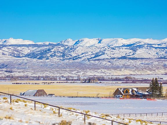 This home has plenty of room for of visitors or family. Large bedrooms, lots of space to spread out and ample storage. The 4th bedroom is separate from the main area of the house, perfect for guests, a STR, personal gym or home office. Wind River mountain views, backed up to ranch land, tons of windows, huge wrap-around deck, seasonal pond, 1/4 mile off the end of a quiet, county maintained road. Landscaped, with a sprinkler system, a heated 1440sqft quonset, fenced for horses! 4.5 miles from local airport.