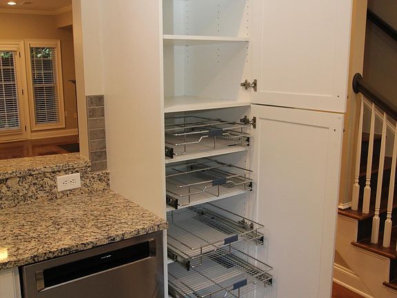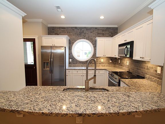 The downstairs features a beautiful large kitchen with an elegant paver tile floor and backsplash, granite countertops, upgraded cabinets, and stainless steel appliances. Also featured are stainless steel appliances. There are hardwoods throughout the remainder of the first floor. Also on the first level you will find a fully functional wood burning fireplace as well as a 1/2 bath. The area above the fireplace mantel is pre-wired for large screen TV.