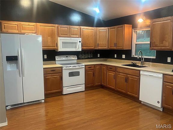 Surrounded by mature trees this CHARMING split level home shows beautifully and should be ranked at the top of your MUST SEE LIST! Situated on a private street with well established neighbors and part of the FOX C-6 School District. Step inside to your open and inviting layout and immediately feel right at home. Tons of natural lighting throughout home equal spectacular views year round. Enjoy your spacious great room, the ideal area for small or large gatherings. For the culinary lover cook in style in your large eat-in kitchen featuring an abundance of counter & cabinetry space. A set of complimentary white appliances are to remain for your cooking pleasures. This beauty just keeps on giving room after room, with THREE GENEROUS size bedrooms with ample closet space throughout. Up dated hall bath convenient for all. French door allow for you to step out to your cozy patio, while enjoying the private view of your fenced in wooded treeline. Finished lower level provides additional entertaining space with full bath and laundry area. Deep two car garage with work area a plus. Easy access to 61/67, HWY 55, shopping, parks, and so much more. No yearly HOA fee's to contend with would be considered and extra bonus. Seller will be installing a new roof prior to closing. Call for your personalized showing today. You will not be disappointed in this one of a kind find.