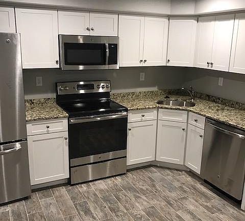 Newer building. Private entrance. All tile floor. Stainless steel appliances with granite countertops. Washer and dryer hookup. Central a/c. Gas heat.