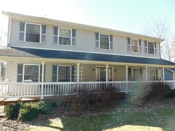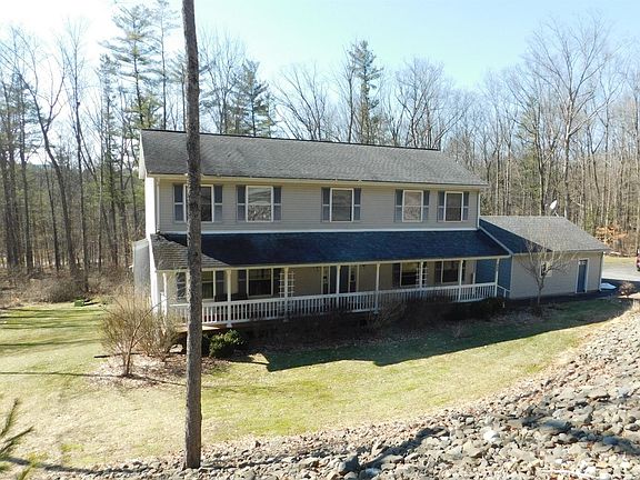 Welcome to Ellis Highlands neighborhood, in the heart of Ellis Hollow. This 2004 Colonial offers generous room sizes throughout, with an elegant formal 2-story entry off charming covered front porch. Large open kitchen with breakfast bar & eat-in dining, plus open to the great room with LP gas fireplace with marble/wood surround. Formal dining and living rooms gives entertaining options for guests. All new hardwood floors in living, dining, kitchen, great room, stairs and up hallway. All 4 bedrooms are up including large master suite with jet tub & separate shower. Newer upper back deck overlooks backyard lined by woods. Additional 1000 sq ft in finished lower level which walks-out to lower deck/yard. Attached 2-car garage, main level laundry & half bath. Paved driveway with turn-around. Short commute to Cornell Vet School or downtown Ithaca. Cul-de-sac setting and privacy, yet not isolated. You'll love coming home to modern living in move-in condition!
