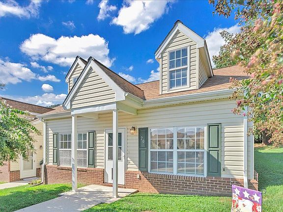 Move-in ready, maintenance free and convenient to EVERYTHING that the Town of Rocky Mount has to offer. Open living area features hardwood floors and gas log fireplace. Both bedrooms have newer Luxury Vinyl floors. New roof in 2024, Heat Pump installed by Davis Heating & Air appr. 3.5 years ago, and Stainless-steel stove with built-in air fryer is 1 year old, per seller. Private, oversized, stamped concrete patio with approved storage building and covered pergola. These sought after Townhomes (especially end units) in Hunter's Ridge do not become available very often, so you better GET IT WHILE THE GETTINGS GOOD!