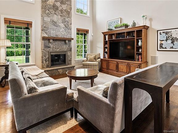 Beautiful and conveniently located 5 bedroom, 4-1/2 bath stone and clapboard home overlooking the 6th hole of Milbrook golf course. With 5000+ square feet of finished living space on 4 levels everyone can spread out. Formal living and dining rooms, 2 offices, recreation, exercise, media room, 2 bonus rooms, 1st floor en-suite bedroom plus huge Master Suite and 3 double bedrooms with 2 baths on 2nd floor. Gorgeous flat lawn with covered patio and outdoor fireplace. Pool site. You must see this house if you want all the comforts of home in an in-town location with sensational views.
