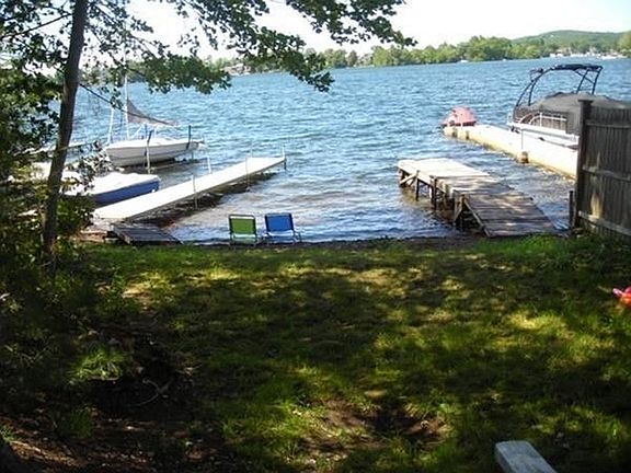 This Webster Lake Waterfront Brick Front Ranch with its naturally flat, sandy Beach with crystal clear waters and private dock, in move-in mint condition is now offered at a great price: $471,900! Situated in a Webster Lake surrounds Cul-de-sac dead-end corner Lot of some 13,500 sq. Ft, and encompasses some 2,350 sq.ft. Living space; main features include 4 Bdrms, 2 full Baths, a huge Game/Rec. Room, a large Deck overlooking fantastic Webster Lake views, with a Slider to an open design Dining -Kitchen combo. Granite countertops and new Low "E" Argon Gas Windows. The main walk-in floor, in addition to the Kitchen-Dining Combo room, has 2 spacious bedrooms, a comfortable family room, and a large wheelchair accessible bathroom with laundry hook-ups and ceramic floor. It has a fully finished walk-out Lower level with its private Entrance, 2 spacious Bedrooms a full Bath, and a huge Game/Recroom, that is quite suitable for an In-Law arrangement. Oil Heat (Furnace some 15 yrs), Hot Water (3yrs), Oil Tank ( 6months), and Town W/S. The roof and driveway are some 6 years old. The tidy front yard and driveway are lit by the House private Light Post equipped with a Dusk to Dawn Photocell metered separately by National Grid.The main Entrance and the large Deck overlooking great Webster Lake views are barrier free wheelchair accessible from just a few steps from the level driveway. But if you are looking for a Webster Lake extraordinary and private Waterfront compound for large household or special guests accommodations, waterfront and grounds recreation and athletic activities, and guests gatherings and cook-outs, privacy, leisure and tranquility, you can have that too, by purchasing the entire Estate, consisting of 2 Homes, #20, #18 (some 44,000 sq.ft. Living space, 7 bedrms, 4.5 baths, private In-Law's suite), plus 3 buildable deeded Lots, all situated at the dead end of this serene Cul-de-sac surrounding Webster Lake! (Owner financing possible). Area: Worcester
