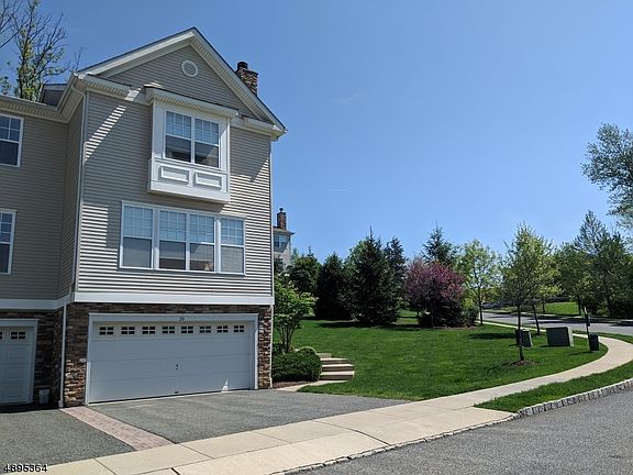 Aspen model end unit townhouse with 2 car garage on an open corner lot. Beautiful hardwood flooring on the main level. Large eat-in kitchen with sliders to patio. Fireplace in living room. Lots of windows. With 3 bedrooms, 2.5 bathrooms and a family room in the basement, this home has plenty of living and storage space. Master bedroom benefits from a large bathroom, two walk-in closets and a vaulted ceiling. Enjoy all the amenities of this private gated community; 3 swimming pools, playgrounds, tennis, basketball and volleyball courts. Located just minutes from I 80 and close to Hackettstown which has great dining options and several craft breweries. Surrounded by state parks and open rural roads, the area is great for hiking, fishing, mountain and road biking. Local bus service to NYC.