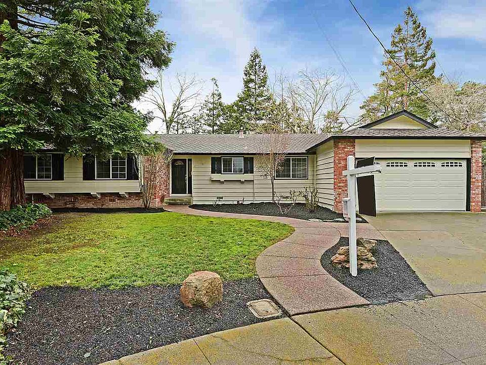Located on a quiet cul-de-sac, this South San Ramon one-story single-family home is in a prime location close to highways, shopping, park, and schools. Enter into warm foyer with wood floors that continue through living room, dining room, and kitchen. New white custom molding is found throughout. Inviting living room with recessed lighting and brick wood burning fireplace is perfect for warming up on those cold winter evenings. Kitchen features recessed lighting, light wood cabinets, granite countertops, double oven, five-burner gas stove, dishwasher. and refrigerator. Spacious master bedroom showcases custom molding and recessed lights with door to back patio and pool area. Backyard oasis is entertainer's dream featuring pool with retractable cover and security fencing. Beautiful redwoods line backyard for extra privacy. Listen to the bubbling brook behind the house while you relax with guests on the covered patio. Quaint finished cottage could be used as an office or small studio.