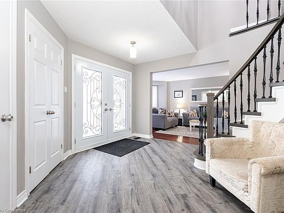 Immaculate Well Maintained Stonegate Beauty 4 Bedroom 80'X136' Lot Home Is Ideally Located Nestled On A Quiet Crescent Backing Onto Conservation Dr Absolutely Gorgeous Private Gardens/Landscaping. This Well Kept Beauty Boasts A Bright White Family Sized Kitchen With Granite Counters Center Island B/I Appliances & Walkout Out To The Garden Hardwood & Vinyl Floors T/O Main Level Upgraded Bathrooms King Sized Master Retreat W/Huge Walk-In Closet Luxurious En-Suite Bath Finished Basement With Above Grade Windows Pot Lights Electric Fire Place Bar Area 4th Bathroom Ideal For Entertaining Huge Backyard With All The Comforts.