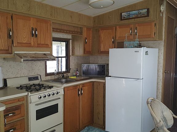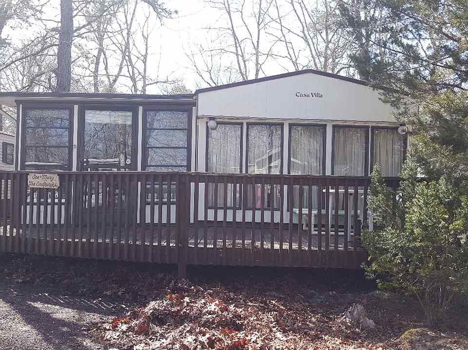 Fantastic Lot!!! Perimeter lot with cleared area and woods behind it. Unit needs some TLC, use it for a season or two as is or rehab it all together. 2nd Bedroom is a bunk room, master has lots of built ins. Florida room is nice and roomy. Deck off to side, storage shed out back and best of all, tons of extra space behind your unit! This is a great lot!~