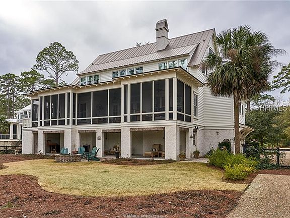 Enjoy Palmetto Bluff marsh and river-front living in this Lighthouse Award Winner for 'Best Overall House' and 'Best Master Bathroom' which features a gourmet kitchen that opens to the great room and dining area, and a first-floor master suite, all with direct access to a large screened porch overlooking the marsh and river. Also on the first-floor is a large laundry/mud-room, master study and a back kitchen. Both guest bedrooms/guest baths are located upstairs as well as a large sitting area/office and a bunk room. Reclaimed heart pine flooring, 2 dishwashers, 2 refrigerators, fabulous built-ins, storage, and window seats are a few of the many custom features
