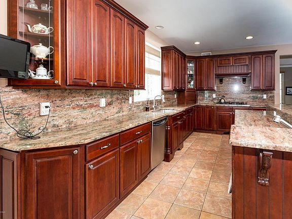 IN GRAND STYLE-Designed for spectacular entertaining and a home for family of all ages. Entry is enhanced by a two story foyer with dramatic bridle stairway, large gourmet kitchen with name brand appliances & custom cabinets & granite counters. Features include In-law suite with bedroom, bath, kitchen & living room with separate entrance. Upstairs features 4 bedrooms & 3 baths including master with sitting room. Back yard is a private amenity filled area with heated in-ground pool & slide built into rocks & deep enough for diving, separate new salt water whirlpool built on enormous deck for year-round enjoyment. Basement media room is 1700 sq ft with custom soda fountain/bar, bath & a birthday party heaven for kids & parents! Back up whole house generator. Pool has continuous clean vacuum.