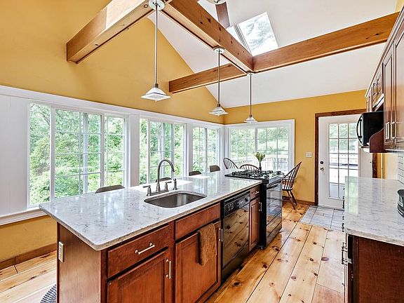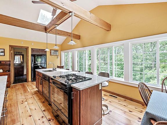 - Kit Dscrp: Ceiling Fan(s), Flooring - Hardwood, Countertops - Stone/Granite/Solid, Ceiling - Cathedral, Ceiling - Beamed, Country Kitchen
