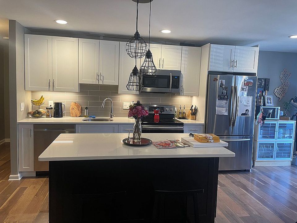 Fully renovated 1br 1bth condo in Hackensack on the border of Riveredge. Less than 5 minute walk to New Bridge Train station & Bus stop in front of building. 2nd floor w/ 2 elevators in building & 2 sets of stairs. Condo overlooks outside (1) parking spot and is an easy 1 flight walk up. HOA ($380) covers water/heat, garbage, grounds, snow removal, & balcony upkeep. Laundry on-site. This unit only only has other tenants above and on the bedroom side. front is hall way, below is laundry, living rm side is stairwell. It is very quiet! new ceiling 6'' led downlights installed throughout main living space, fabuwood soft-close cabinets, delta faucet, quartz countertop, under the cabinet lighting, high end samsung appliances (water filter in fridge, double oven, dishwasher). None gas building - all electric. All lights on Lutron dimmers. 1yr old 8,000BTU AC unit in Bedrm. 3-5 yr old 10,000BTU in living space. open concept living space - kitchen, dining, living rm all in one big room. ~25'x~17' large bedroom 15'x11' + updated closet shelving and drapes. Ceiling fan with light & remote. fully renovated bathroom, new tub, moen/delta fixtures, toilet, etc. Wall mounted tv in living rm area with power and fiber lines(fios) behind tv for easy installation. Updated 2 panel doors throughout with new Schlage satin nickel hardware. taxes ~4800