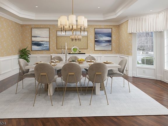 Extraordinary Custom-Built Residence in Bernardsville An exceptional custom home in Bernardsville is approached by a gated entry to the long drive which reveals over six acres of fenced serenity. This privately-situated residence is close to shops, restaurants and mass transit options in downtown Bernardsville, Morristown or Mendham, and a short distance from major airports and New York City. Light-filled and airy, the flexible floor plan overlooks lushly landscaped garden views, a heated pool, outdoor kitchen and expansive terraces. Numerous updates and upgrades were made throughout in 2011 and 2012, resulting in a fresh, contemporary aesthetic for this architecturally-nuanced home. The extensive remodeling process involved a kitchen addition, new windows, radiant heated floors in most baths and the kitchen, and a stylishly finished basement featuring a 2015 customized 1,400-bottle wine cellar enveloped in custom stone and woodwork. Exterior upgrades included stonework on the façade and chimneys, plus all-new bluestone terraces, outdoor fireplace, pool patios and walkways. In addition, new mechanical, electric, technology and music/television entertainment systems were installed, as well as a Baldor whole-house generator. In the attached, heated four-car garage, a variety of custom organizers from GarageTek streamline storage. Highlights of the impressive 17-room home include six bedrooms, seven full baths, two powder rooms, hardwood and marble flooring, intricate millwork, soaring ceilings, four fireplaces, a soothing color palette, multiple spaces for remote school or work options, a first level guest bedroom or home office, luxurious owner's suite and walkout, finished daylight lower level. A grand entrance foyer designed with marble floors and a curved staircase reveals adjoining gathering areas such as the sunny tray ceiling living room connecting to a light-filled sunroom and a bow windowed dining room. Designer touches are evident in a chef's center island kitchen containing custom off-white cabinets, professional-caliber stainless steel appliances, granite counters and hardwood floors. Fully windowed for an abundance of natural light, the kitchen's dining area offers French doors to the terrace. . Custom details in the nearby mudroom include a built-in desk, cabinets and bench seating. Adjacent to the kitchen is a coffered ceiling family room featuring a stone fireplace flanked by built-in cabinets. An elegant cherry paneled library on the other side of the family room is warmed by the glow of another fireplace. An owner's suite on the second story contains a bedroom with fireplace, an extra-large walk-in closet featuring a granite island, dressing area and wardrobe organizers. The sophisticated marble master bath offers an oversized steam shower set behind clear glass doors, a jetted soaking tub elongated double sink vanity and private commode. Four more bedrooms connect to a private or shared full bath. Completing this level is a bonus room with built-in desks that's ideal for virtual school or work situations, or it can function as the sixth bedroom. Completing this level is a laundry room with dual washers and dryers. A third-floor arts and crafts room or office space has ample closets. Even more living space has been created in the walkout lower level's media room, windowed game room, gym and rustically-inspired wine cellar with bar and tasting areas. This impeccably-designed home is a rare offering in one of the state's most coveted locales.