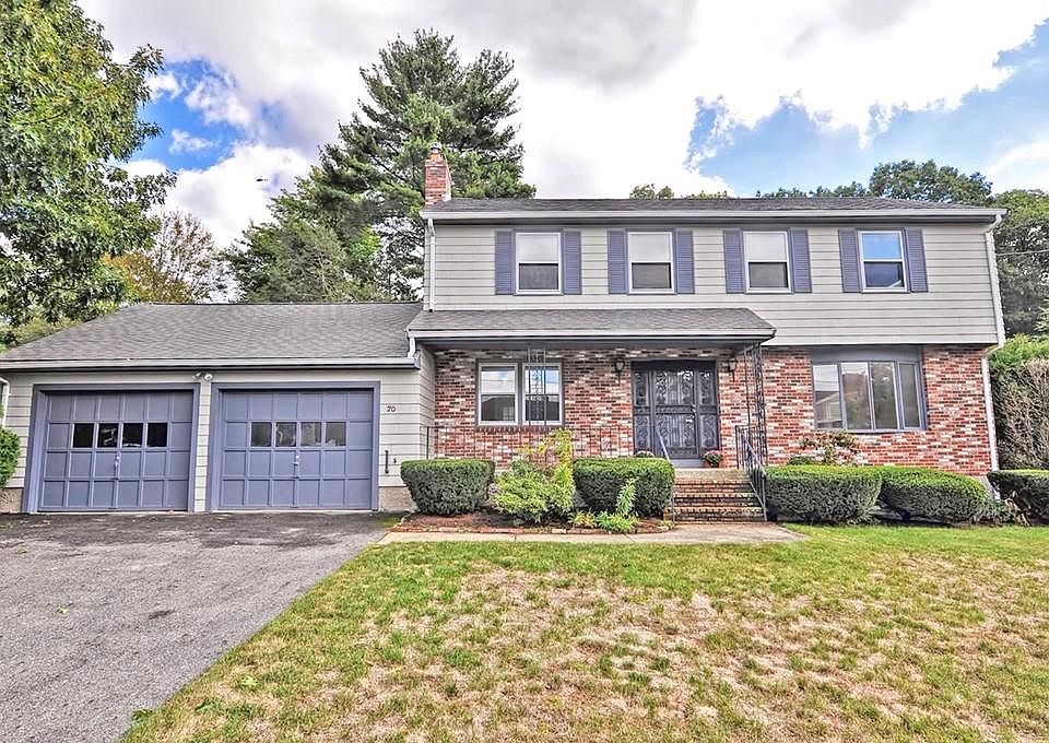 Classic brick front garrison colonial in desirable Greenlodge area. MINUTES TO ALL: commuter rail to Boston, East St. Rotary, rte 1/95, schools, parks, library & shops at Legacy Place/University Station. Situated on a gorgeous lot in a cul-de-sac neighborhood, this bright, spacious & well-maintained home has much to offer. Entertain w/ family & friends in the large sun-filled living rm that opens to a formal dining rm. Spacious eat-in kitchen w/ new range has potential, waiting for you to make your own. Beautiful fireplace family rm leads to deck overlooking a sizable & beautifully landscaped backyard. Upstairs: 4 bdrms w/ h/w flrs & plenty of closet space incl. a front to back master w/ walk-in closet & private bath. Large unfinished walk-out basement offers unlimited potential. FEATURES/UPDATES: oversized 2-car gar w/ lots of storage, 1st fl freshly painted w/ new light fixtures, h/w fls, newer heating syst/water htr-2010, roof-2004.