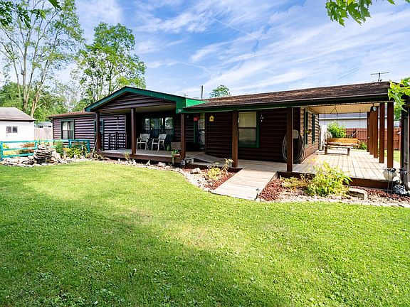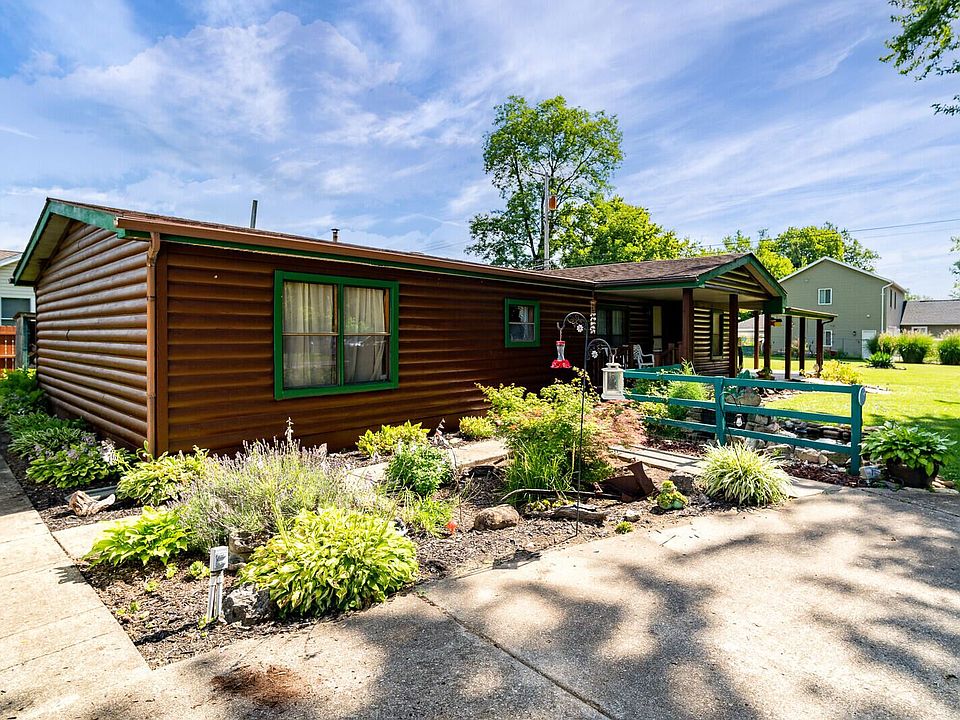 Welcome to the country! Charming, rustic 3 bedroom, 2 bath log style siding home sits on multiple parcels offering ample space to unwind. Watch the sunrise from your porch swing on the gorgeous wrap-around covered porch. Beamed, vaulted ceilings and an attractive stone fireplace offer a lodge-like feel to the great room. Plentiful oak cabinetry in the large eat-in kitchen adds to the quaint country setting. 3 bedrooms and two full baths. Large yard and nice stone landscaping with pond. Small garden ready for tending. 3+ car detached garage. Storage shed. Schedule a tour today! Property being sold AS-IS