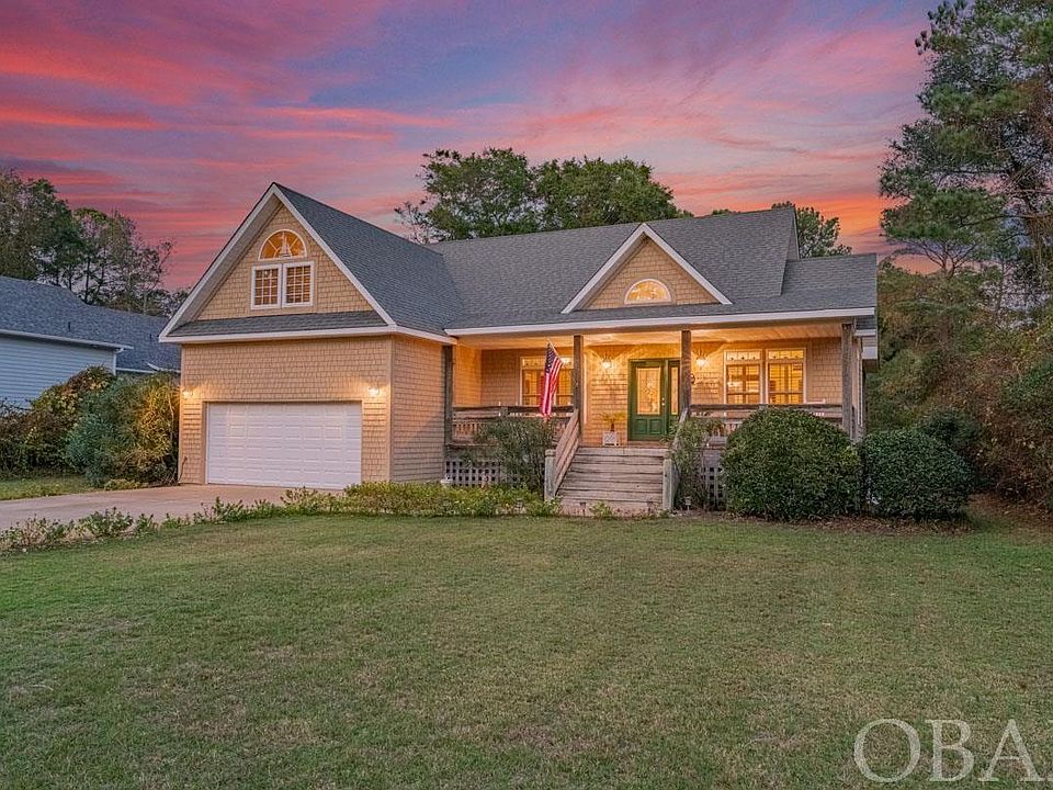 Seller is firm on the asking price of $579,900 with no negotiations. The best value in Southern Shores! This Craftsman Style Canalfront home is situated in a coveted location of Southern Shores with a short walk to restaurants, grocery stores, shops, Starbucks, and the beach! Words can not convey all the comforting, functional, & well appointed details this home has to offer. Quality constructed by renowned OBX builder Alan Geise. Built with Old Nags Head style cedar shakes, the warmth of welcoming front porch draws you in as you arrive, walk through the front door and you are hugged with a quiet comfort in a tranquil setting. From the serene wooded canal views to the soothing coastal architectural style including; plantation shutters, transom windows, wainscoting, hardwood floors, and soaring vaulted ceilings. You'll love the seaside feel in the woods! Designed with an expansive open concept, this 3 bedroom 2 bath home features well placed transom windows to capture an abundance of natural light with beaded wainscoting and glistening hardwood floors throughout the great room, kitchen, and hall. The huge chef's kitchen offers ample counter space, plenty of cabinets for storage, stainless steel appliances and eat-on bar for 3. The dining area has canal views and opens to the wrap around back porch, that could easily be screened in. Enjoy relaxing under a canopy of trees and the soothing sounds of nature. This entire space is perfect for entertaining with a natural flow form great room, kitchen, and the outdoor gathering areas. The main level en-suite boasts a walk-in closet, private bath, jetted jacuzzi tub, stand-up shower and vanity. There are two more bedrooms on this level, one is currently being used as an office, and a full hall bath. The only stairs in the house lead you to the flex space above the garage. Perfect for a media room, game room, exercise or craft room. The exterior offers a large 2 car garage with a dry entry into the conveniently located utility room. Located on a 1/2 acre homesite, with 100 feet of canal frontage, the backyard provides a cozy private setting tucked away from it all with gorgeous trees, canal views, and lots of wildlife. This house has it all, and well designed with practicality in mind. You have the best of both worlds; proximity to shopping and privacy in the woods. Visit sscaobx.org and DuckWoodsCC.com for membership packages, sports, fitness and social offerings! Join the So Shores Civic Assoc foraccess to private Sound-side Marinas complete with boat launches & boat slip rentals, a Sound-front sandy Beach, many Private Ocean/Beachaccesses with parking throughout town at the oceanfront, PLUS multiple parks, tennis & basketball courts, a soccer field and more. Should have room for a pool, buyer's agent will have to verify. For 3D Virtual Tour copy and paste the following link: https://my.matterport.com/show/?m=XouAE2danmW&mls=1