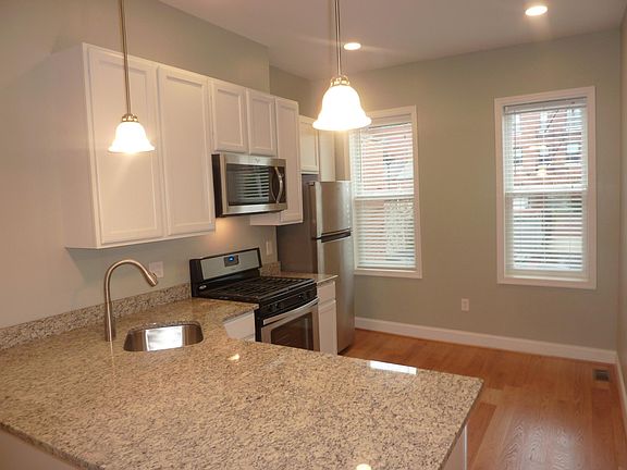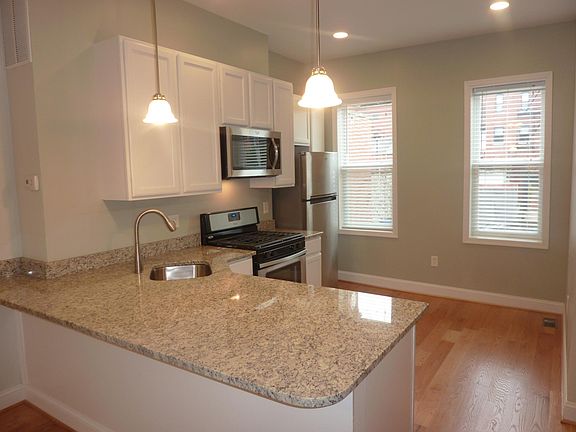 Just renovated! Beautifully renovated 2BR/1.5BA front-bay Victorian townhome just blocks from Georgetown University Law School, Union Station and China town. Includes contemporary first-floor design with hardwood floors, exposed brick wall, recessed lights and a gorgeous kitchen with white, solid-wood cabinets, stainless steel appliances, granite counters and pendant lighting. Upstairs are two spacious bedrooms upstairs with lots of closet space and a fully renovated bathroom with marble tiles. Full finished basement with wall-to-wall carpets and full sized windows. Available Early March. Minimum credit score 660. Off-street parking for one car Pets OK Tenants pay all utilities Offered by Tiber Realty Group, LLC Contact Christy Minimum of a one-year lease.