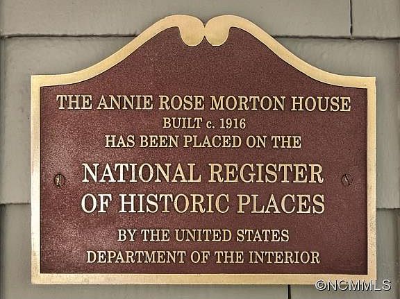 A most charming home, the Annie Rose Morton House, on the National Register of Historic Places, is on a quiet street in Grove Park that offers walkability to the shops & restaurants of both Charlotte Street & Downtown Asheville. Or just enjoy walking the sidewalks of the tree-lined streets of this lovely neighborhood, stop at the park, or relax in your own front porch swing & feel the breeze as you look across the tree shaded yard. Step through the wide front door to a home restored in keeping with its original character. You'll find narrow oak & pine floors throughout the first two levels, unique windows, high ceilings & amazing storage. The lower level bonus room & bath with its private entrance would make a delightful space for an Airbnb. Electricity has been added to the garage, and with its high ceilings, it could be a great studio or office. Don't miss the opportunity to own a piece of history and experience Asheville living at its finest.