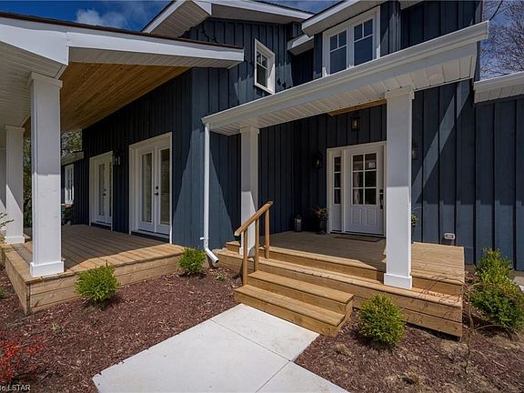 Show-stopping newly renovated home on spectacular oversized lot located in coveted quiet residential neighbourhood, away from the high seasonal traffic of this historical village! Outstanding curb appeal with dramatic board and batten siding, concrete double driveway and covered front porch lead to an outstanding floor plan featuring open concept main floor living, spacious and welcoming foyer, 5 bedrooms/3 baths, main floor laundry, easy care vinyl laminate flooring and over-sized single garage with inside entry and pedestrian door to backyard. The sunlit dining area overlooks a spacious patio with hot tub on a deep lot leading to a multi-functional 24' x 32' shed w electricity. Further private access through laneway off Hill Terrace. The 185' drilled well delivers ample fresh water with municipal water available. This private paradise is perfect for the discerning buyer seeking quality and high-end living.