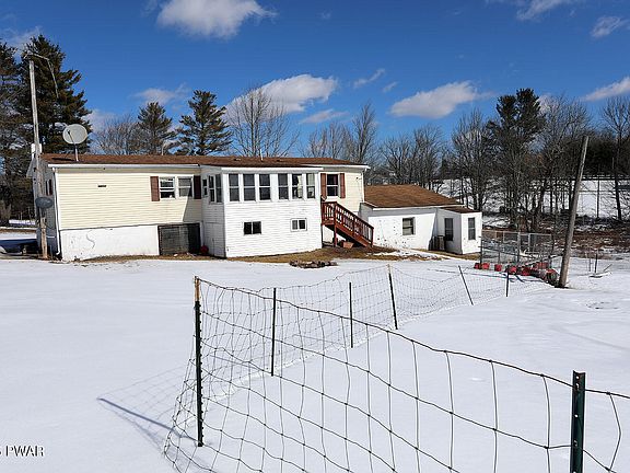It's tough in this market to find a home under $250K that is livable, has plenty of room, a barn and views, but this one does! This pleasant 3BR/1.5 bath double-wide features an open living area, sunny kitchen with granite counters and small island, dining room, laundry on main level. There's a sun porch off the laundry that will make that task easier to take! Or use it to start plants in the winter-- full of thermal and solar energy! The home sits on a foundation, making it very sturdy. The basement w/woodstove is large with high ceilings and opens to an oversized garage with plenty of room for extra vehicles, storage and projects. There's also a large barn with 4 stalls for extra storage, farm animals, etc. Situated on 4.58 acres, there's nice soil for farming, grazing, hay, pasture, etc. Just 10 minutes to Honesdale for shopping and eateries, but you're away from it all here!