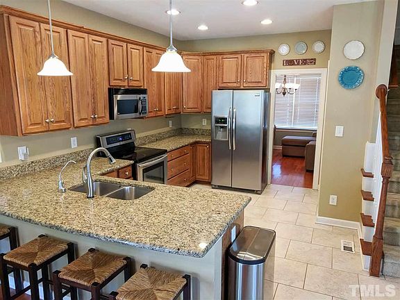 Beautiful UPGRADED home! Bonus Room + large 2nd story for storage/expansion! Gourmet Kitchen w/ granite & SS. 18 inch tile in kitchen, mudroom & sunny breakfast nook. Solid oak floors/cabinets and 9+foot ceilings thru out! 1st floor master w/garden tub, separate shower, dual sinks, tray ceiling & WIC. Open floor plan w/ vaulted living room + gas fp. French doors open to screened-in porch and NEW deck overlooking backwoods. Minutes to Wake Forest, Raleigh and Durham. Reclusive HOA. Don't miss this one