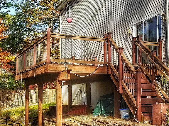 Lovely oversized Colonial on a quiet street in Hopatcong very convenient to highways and shopping. Built in 2003, this home features 9 foot ceilings, front to back Living Room & Formal Dining Room both with crown molding. Large Eat In Kitchen with breakfast bar, pantry, slider to trex deck overlooking rear yard. Large master bedroom with full bath & walk-in closet, 2 more bedrooms plus an additional room with closet perfect for an office. library or quest room and a 2nd floor laundry room! Full basement with door to back yard, 9' ceilings perfect for finishing. Above the 2 car attached garage is a HUGE unfinished area just waiting to be made into something awesome! Central Air, wired for generator and more!