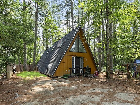 Discover your ideal getaway in Center Conway! This stunning A-frame/Chalet is nestled between the tress and a stone throw away from Conway Lake. Property was completely rebuilt and renovated in 2019, offering the ideal blend of modern luxury and rustic charm. With 3 spacious bedrooms and 2 beautifully appointed bathrooms, this fabulous property is excellent for both relaxation and entertaining. Venture inside and be wowed by the open-concept living area, featuring soaring ceilings and an abundance of natural light. The modern kitchen features sleek countertops with plenty of workspace and ample storage. Cozy up by the fireplace in the inviting living room or stroll outside to enjoy the expansive outdoor space, great for barbecues, gatherings, or simply soaking in the serene surroundings. Located just minutes from the vibrant downtown of North Conway, you'll have easy access to shopping, dining, and entertainment options. Plus, outdoor enthusiasts will love being close to premier ski areas and year-round recreational activities New Hampshire has to offer. Don't miss this opportunity to own this gem in one of New Hampshire's most sought-after locations. Schedule your private showing today and fall in love with your new home! Delayed showings until 8/23 after 2pm.