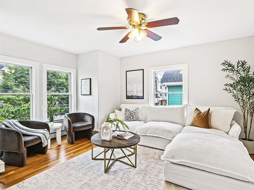 If you were to pick the perfect Union Square location, it would probably be this. Nestled on a quiet, tree-lined side street just a few blocks from the Union Sq Green Line, down the street from Market Basket and Bow Market, this beautiful home offers the perfect blend of convenience, space, & character. Inside this condo, you'll find modern updates and comfortable spacing in each room. Upstairs, two sun-filled bedrooms boast skylights and feature large walk-in closets. Remote work is made easy with a dedicated private office complete with custom built-ins. The generously sized bathroom features both a soaking tub & a separate shower. There is an off-street parking space offered, laundry in basement, extra basement storage, and a fenced-in yard with garden and patio. Email now to schedule a tour or see the video walk-through!