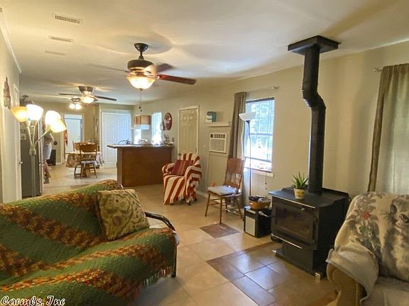 Home in the Country. This 4 bedroom, 3 bath home sits on 25.56 acres. Private lane leads to a home nestled in the trees, secluded but not too far from town. Mature walnut, pine, and hardwoods, large pond fed by a wet weather spring, completely fenced, 4 outbuildings including a barn, and a little garden spot. The house has an open floor plan with a bedroom on each side, and 2 bedrooms and small bath upstairs. This one won't last long at this price!