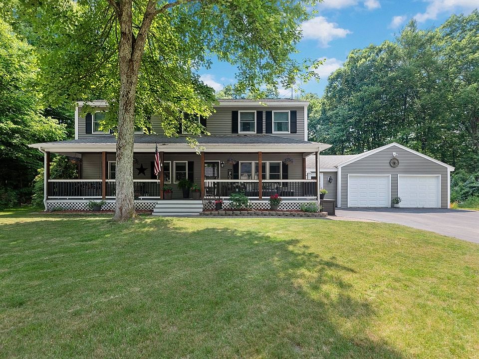 PREPARE TO BE IMPRESSED! This 4 bedroom, 2 bath home has been well maintained, thoughtfully upgraded and is move in ready! Featuring a welcoming Farmer's Porch, versatile layout, updated kitchen with quartzite counters and new appliances, dining room with pellet stove, living room with built-ins and fireplace, first floor bedroom/home office, full bath, mud room, and sitting/family room. Upstairs there are 3 spacious bedrooms with ample closet space and ceiling fans, newly renovated 3/4 bath with custom rain shower, and laundry. The main bedroom boasts a walk-in closet and private balcony. All this plus a 24x30 two car attached garage, full unfinished basement, partially fenced backyard surrounded by mature landscaping, storage shed, deck with hot tub, 200 amp electrical, whole house generator, central AC on the second floor, town water and sewer. Set on a .47 acre lot in a sought after South Merrimack neighborhood. Easy access to commuter routes, shopping, and restaurants. A must see!