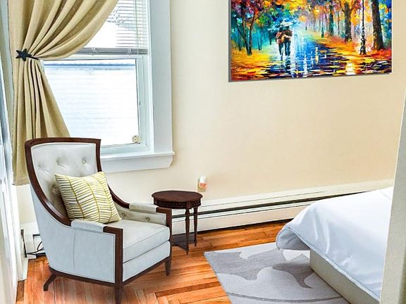 Beautiful first floor apartment featuring 3 bedrooms and gorgeous hardwood floors throughout. Nice kitchen with stove and fridge. Coin op laundry and off street parking. Located on quiet dead end street!