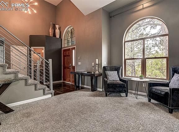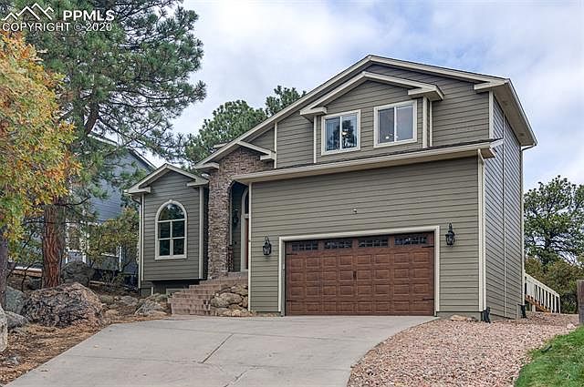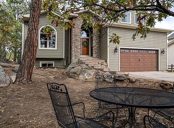 This richly styled Broadmoor Bluffs home is nestled on a cul-de-sac in the foothills of Cheyenne Mountain & the highly sought-after School District 12. The house has been updated from top to bottom with a modern-mountain look. Unwind & take a breath of fresh mountain air on the large back deck, perfect for entertaining. Enjoy the mountain & city views! Natural light & scenery displayed from the large windows throughout. Landscaping is low maintenance with natural terrain, rock & plenty of gardening potential for those with a green thumb. Updates include: new roof 2018, new 6 inch gutters 2018, new Trex deck 2020, new high-end, energy efficient AC unit 2019, new garage door (wireless), new interior & exterior paint, new trim & crown-molding, new interior & exterior lighting + high-end living room ceiling fan, refinished & stained hardwood floors, new carpet 2018, manufactured hardwood floors in basement, stylish wood-panel walls in basement, solid wood doors throughout with updated hardware, new electronic blinds 2020, total kitchen remodel with new stainless steel appliances, cabinets, hardware, waterfall granite countertops, backsplash & tile flooring, bathrooms have all been remodeled with new floor tile, vanities & tile surrounds. Truly a hallmark of quality & comfort. Come check it out... won't last long!