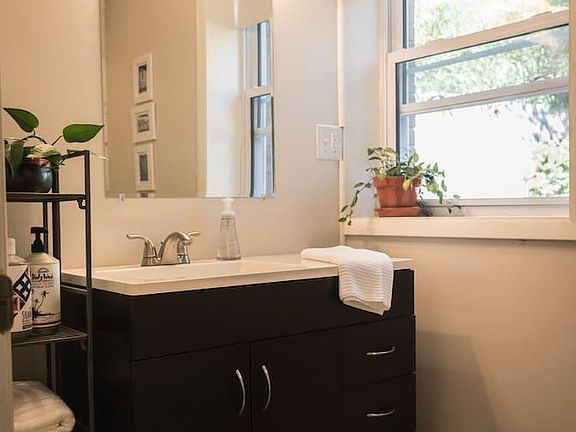 Furnished, 30-day rental Enjoy all that Asheville has to offer, and come home to this private oasis in the heart of the city! This bright, open and updated ground-level studio apartment is just a couple blocks from West Asheville's cafes, shops, restaurants, breweries, coffee shops, music venues and more! The apartment is just a short drive to downtown, the arts district and the Blue Ridge Parkway, with all of the opportunities for recreation that the mountains have to offer. The studio holds inviting, contemporary and eclectic furnishings in an updated mid-century house. It has a patio with a bistro table and there is a large back yard available for use. The apartment has a separate entrance with a key code. The studio is an ideal space for a single tenant or a couple with a soft, comfortable queen-size bed. The futon couch opens into an additional twin bed. A Pack-and-play is also available upon request. The apartment has a full bath with shower and tub, stocked with shampoo, conditioner, body wash, lotion, hair-dryer and towels/washcloths. The kitchen includes a refrigerator, range/oven, toaster oven, microwave, coffee maker, plates, glasses, bowls, silverware, mugs and Brita water pitcher. The windows are fitted with blackout shades to ensure you wake up when you want to. The apartment has a new mini-split heating and air conditioning unit. All utilities and high-speed internet are included. Wifi is suited for remote work/Zoom calls. The apartment contains a 32-inch Smart TV with Roku access - easily stream your favorite shows via your Netflix, Hulu, HBO Max account. A complimentary laundry service is included: laundry will be picked up once a week, washed, dried, folded and returned same day. There is also a laundromat within a block of the studio. One Month Lease, longer terms are available (please inquire) Off street parking High Speed Internet + Utilities included Longer lease terms considered Quiet Hours 10pm-8am