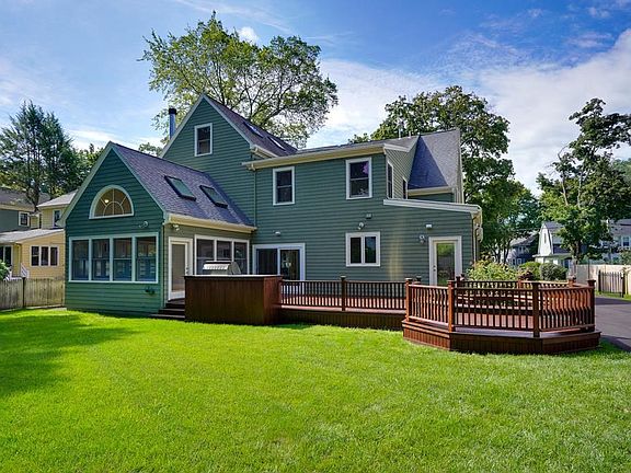 Sensational updated home in Waban in pristine condition on a sought after quiet street with many Angier, Brown and South families. This 5 BR/4.5 bath home features a modern flow layout for family life. Enter into a sun filled two story foyer leading to several spacious rooms - Living Room, Dining Room, Office, Window Lined Sunroom and Family Room with Fireplace. Large eat in kitchen with a five seat island and Subzero/Thermador appliances connected to an exquisite mahogany deck with built in Viking grill and fence enclosed private yard. The second floor has a master suite with his/her closets and spa like bath with jacuzzi. In addition, on this floor are 3 more bedrooms with 2 baths and a laundry room. The third floor offers a large wide open room and full bath which can be used as a bedroom, playroom, gym or au pair suite. Close to Waban T, town center and major routes.