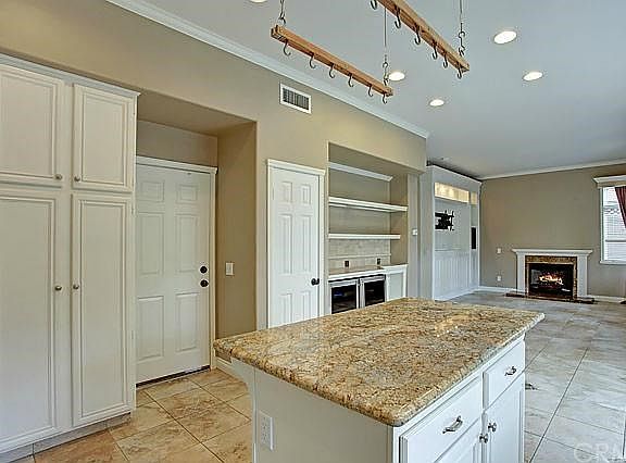 This must-see exquisite and regal, highly upgraded beautiful home, is located in the most desired center aisle of the very family-friendly Santa Fe neighborhood. The sophisticated custom remodeling and stunning upgrades throughout this elegant home are abundant. Hand-chiseled marble and travertine flow beautifully throughout this entire move-in ready, turn-key home. Custom built-in entertainment center specially-made to house a 70" flat-screen T.V. is all pre-wired for 7.1 surround sound with custom sneak-in audio room behind equipment rack for easy access. Additionally, a custom built-in buffet contains 2 stainless steel beer and wine refrigerators. This designer home has luxuries such as granite counter tops, travertine backsplash, stainless steel appliances, a vaulted entry way, 10' ceilings and 4" crown molding and baseboards. No detail was left unturned. Estimated at over $150,000 in upgrades. Your move-in ready dream home awaits you.