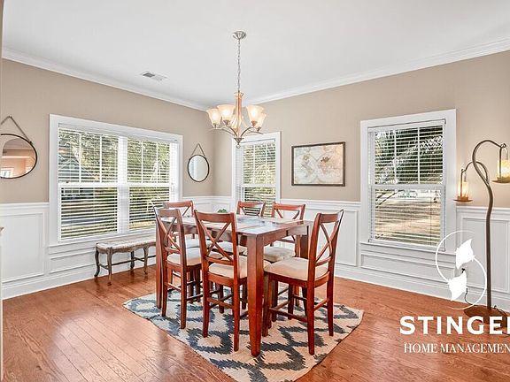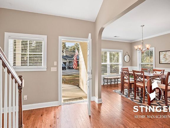 This stunning 4-bedroom, 3.5-bathroom home offers a perfect blend of elegance and comfort, featuring beautiful hardwood floors and charming archways throughout. The formal dining room provides a sophisticated space for gatherings, while the spacious living area boasts a gas fireplace, seamlessly opening up to the kitchen with bar seatingperfect for entertaining. The main-level master suite is a retreat of its own, complete with a separate garden tub and shower, double vanity, and ample closet space. Upstairs is a small loft nook leading to an extra-large bedroom with an ensuite bathroom perfect for your guests, along with two additional bedrooms that share a hall bath. Step outside to enjoy the screened porch, large backyard, fire pit, and storage shed, creating the ideal outdoor oasis. Plus, this home is pet-friendly, making it a perfect fit for the whole family. Don't miss outschedule your tour today!