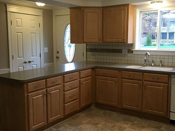 Recently remodeled condo overlooking the pond. Kitchen is beautifully done with crown molding and wainscoting, new Corian counter tops, cabinets refaced, plus washer and dryer in closet in kitchen area. The kitchen looks out the sunken living room's slider to the deck overlooking the pond. There is two bedrooms on the 2nd floor with good sized closets, One bedroom has two double closets, both have been repainted and look great with parquet floors. Full bath on second floor and half bath on the first.Condo is located close to main highways, shopping, schools and medical facility.