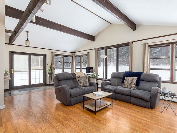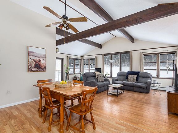 Fantastic 3-bedroom home with tons of exciting updates and plenty of space both inside and out! You’ll love spending time in the open main living space/great room with tall vaulted ceilings, exposed beams and large windows that fill the space with light. This great room combines living and dining areas in one huge space and has a half bathroom. There is a door off of this space to your large back deck, the perfect set up for entertaining or just enjoying the stunning Vermont seasons. From the dining area, head into the kitchen where you’ll find some updated appliances including an electric range (2016), range hood (2023) and fridge (2017). An exterior kitchen door gives you easy access to your grill and side yard. Also on the main level are 3 bedrooms and a large bathroom with a deep soaker tub and separate shower. The larger bedroom has a cozy ambiance with a wood burning fireplace and a private porch, offering you a relaxing place to unwind. The lower level has a family room with a pellet stove, an exercise room with new flooring (2023), heated workshop and so much potential with large windows, built in bookshelves under the staircase and more! Other exciting updates include a new roof (2021), gutters (2023), 2 new Trex decks (2021), a newer furnace (2017), washer (2016) & dryer (2017). Great location, just minutes to Richmond Village, schools, I-89, the Audubon Center and Camels Hump State Forest!
