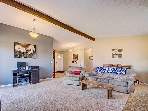 The exquisite ranch-style home sits on over a 1/2 acre and is located in Fountain. It's close to Ft Carson, shopping, schools and so much more. This home has plenty of curb appeal with an extended concrete driveway that leads you to the attached 2-car garage. Mature trees can be found along the driveway providing shade. As you step onto the freshly painted front porch, prepare yourself to be wow'ed. Inside, you will find a spacious Living room with a cozy moss-rock fireplace with solid wood mantle to nestle around during the winter months. There is tons of light flooding the room from the large windows and sliding glass door that leads you to the back deck. Right off the entry, you will find a large Kitchen and Dining area. The Kitchen has great perks like tile flooring, granite counter tops, a pantry, a window over the sink that looks out to the backyard, tons of cabinet space, stainless steel appliances; including a wine cooler and so much more. The Dining area also has tile floors
