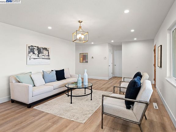 Nestled in a tranquil cul-de-sac within a peaceful neighborhood, welcome to 20 Leamont Ct in vibrant Oakland. This captivating 3-bedroom, 2-bathroom gem is a haven of modern living, boasting a recent transformation with an open kitchen design, recessed lighting, and the addition of new paint and flooring. The updated kitchen with sleek quartz countertops makes meal preparation a joy, while stylishly renovated bathrooms offer both luxury and functionality. Step into the spacious backyard, where endless possibilities await, whether you're hosting outdoor gatherings, enjoying views of the hills, or seeking solitude on the tastefully designed concrete patio area, offering utmost privacy due to the lack of housing in the rear of the property and its cul-de-sac location. This home also features a convenient two-car garage, providing ample space for your vehicles or additional storage. You'll enjoy easy access to Hwy 580, just a few minutes away from the Oakland Zoo, Lake Chabot golf course, and hiking trails. Don't miss the chance to call 20 Leamont Ct home—a place where modern updates, serene surroundings, and tranquility converge to create the perfect sanctuary.