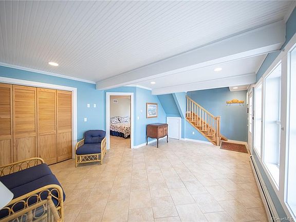 Water, water, everywhere. This stunning contemporary was completely custom built in 2004. A unique property with many amenities that include deep water mooring available deeded right of way to beach and dock, rooftop decking w/ a "Dumb Waiter", HVAC central air w/hydro heat, and outdoor hot/cold shower. This dazzling beauty offers 2 bedroom, 2 baths, and a versatile floorplan that you'll enjoy year round. Just a stroll across the street will lead you to a dock and beach. Enjoy panorama views from this fabulous contemporary....you'll feel like you're on vacation everyday!