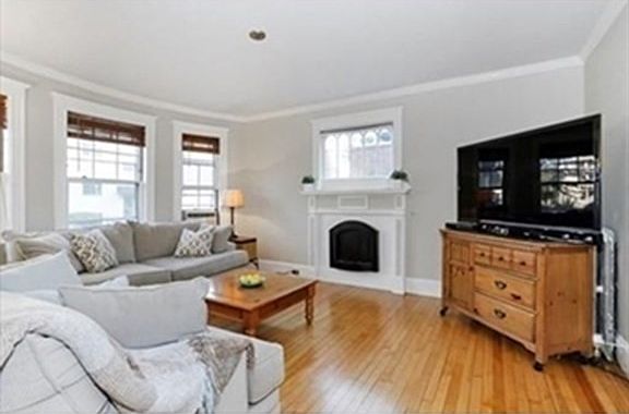 First floor lovely apartment of a well-maintained six-unit condo building in the heart of Brighton Center. The living room and bedroom have gorgeous hardwood floors, with a stunning decorative fireplace in the living room. The full eat-in kitchen has been updated, has tons of cabinet space and is equipped with dishwasher, disposal, and gas stove, as well as a microwave. Free common laundry is in the basement, as with additional private storage. Enjoy a private deck that opens from the kitchen, as well as a common semi-enclosed grass area in the back of the building next to the garage or this unit's parking space that's great for barbeques. Heat, hot water, and one garage parking space are all included in the rent. You'll love the convenient neighborhood!
