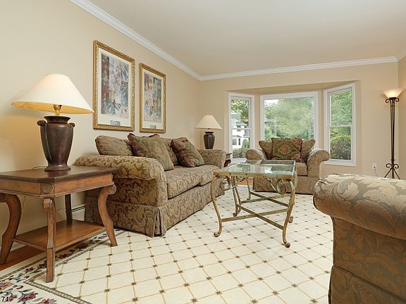 Perfection! Newer siding, picturesque manicured lot with a private setting backed by woods. Walk into the large foyer with custom molding. Large kitchen with breakfast island, natural gas oven with 5 burners, pantry, desk area - sliding glass doors to deck area. Family room boasts a gas fireplace with a marble hearth and custom mantle, plus recessed lighting. Living room and dining room have hardwood floors, bay windows & cornice moldings. Office on first floor could be a bedroom. 5 bedrooms on 2nd floor, plus 2 new baths. Master suite bath has a vaulted ceiling with skylight, jetted tub & stall shower. 5th bedroom has recessed lighting and 2 skylights!. Finished basement with 18 recessed lights, wall to wall carpet plus a full bathroom. To show this home, situated on a dead end street is to sell it.